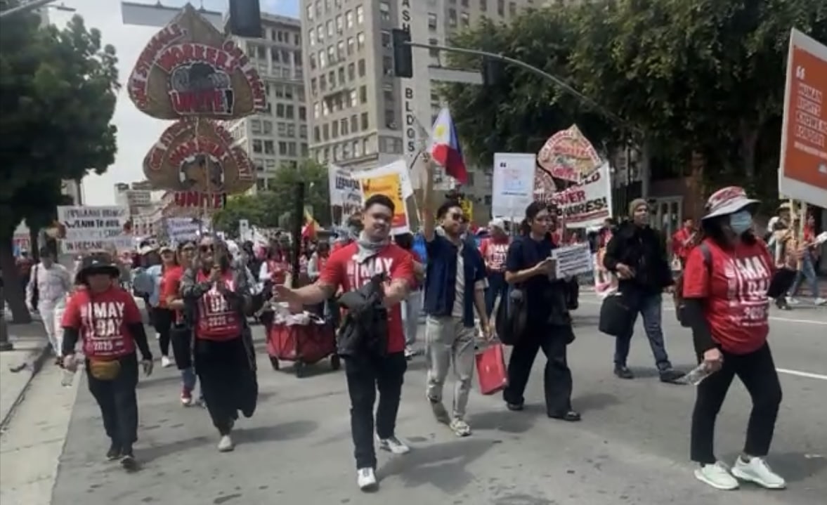 LOS ANGELES – Filipino employees joined forces with thousands of union members for a march. immigrant-rights Supporters gathered in downtown Los Angeles on Thursday for the first of several planned marches. celebrating Labor Day internationally, also referred to as May Day.
